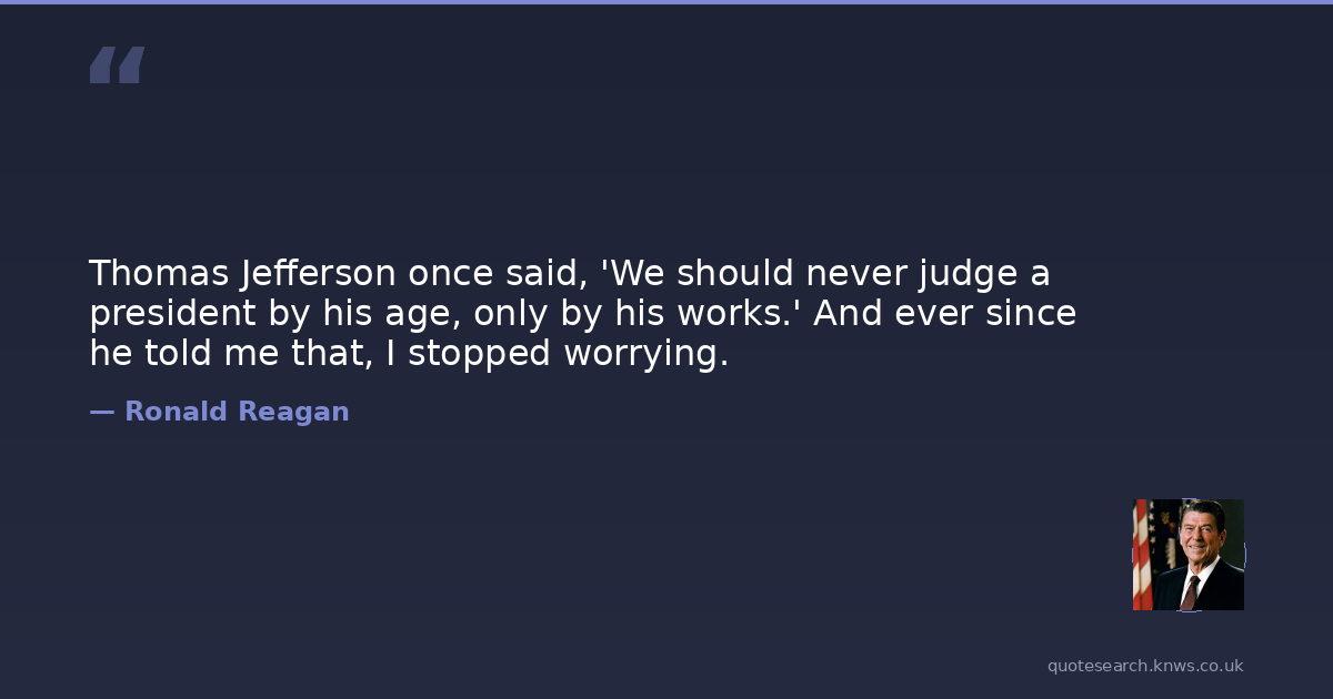Thomas Jefferson once said, 'We should never judge a president by his age, only by his works.' And ever since he told me that, I stopped worrying.