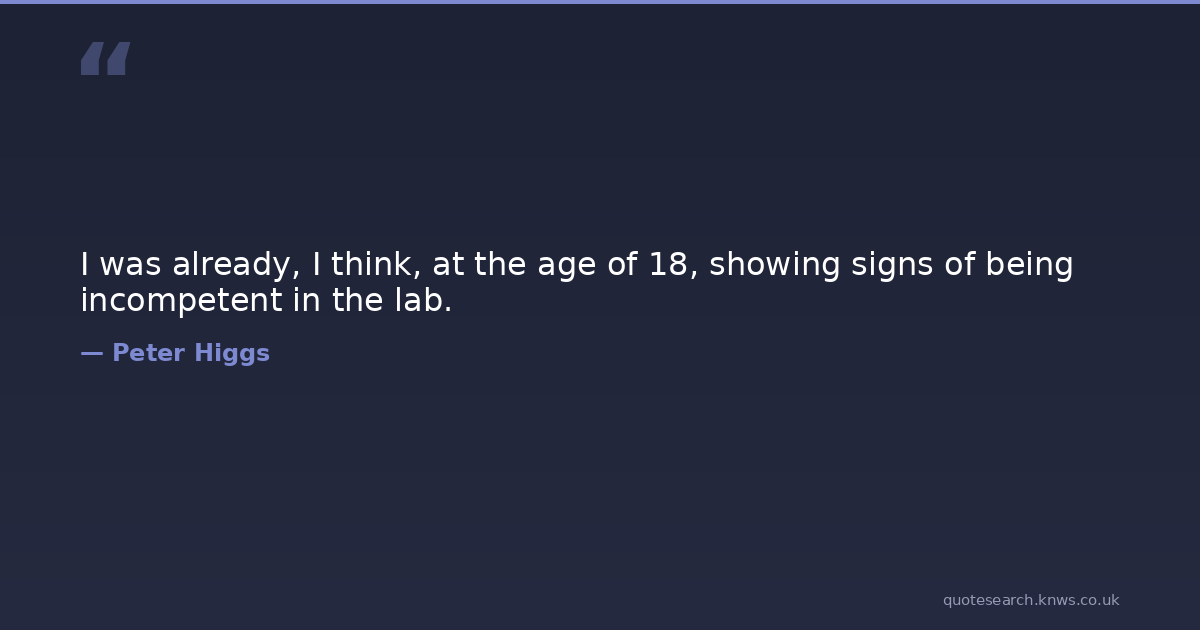 I was already, I think, at the age of 18, showing signs of being incompetent in the lab. Think Signs Being Download Image Share on X Share on Facebook Copy Link