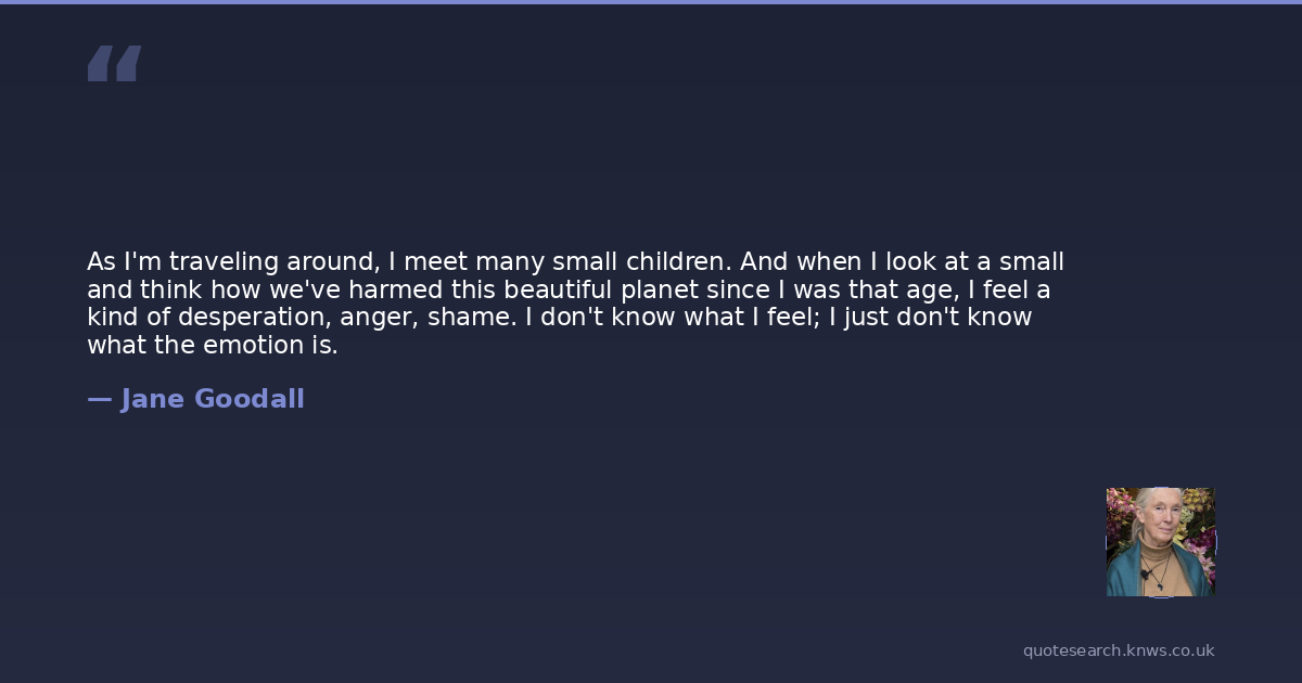 As I'm traveling around, I meet many small children. And when I look at a small and think how we've harmed this beautiful planet since I was that age, I feel a kind of desperation, anger, shame. I don't know what I feel; I just don't know what the emotion is.