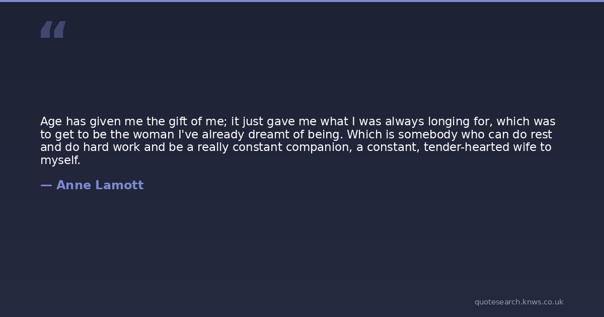 Age has given me the gift of me; it just gave me what I was always longing for, which was to get to be the woman I've already dreamt of being. Which is somebody who can do rest and do hard work and be a really constant companion, a constant, tender-hearted wife to myself.