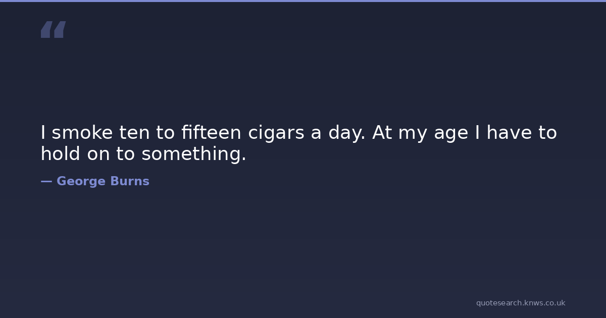 I smoke ten to fifteen cigars a day. At my age I have to hold on to something.