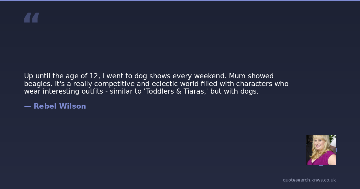 Up until the age of 12, I went to dog shows every weekend. Mum showed beagles. It's a really competitive and eclectic world filled with characters who wear interesting outfits - similar to 'Toddlers & Tiaras,' but with dogs.