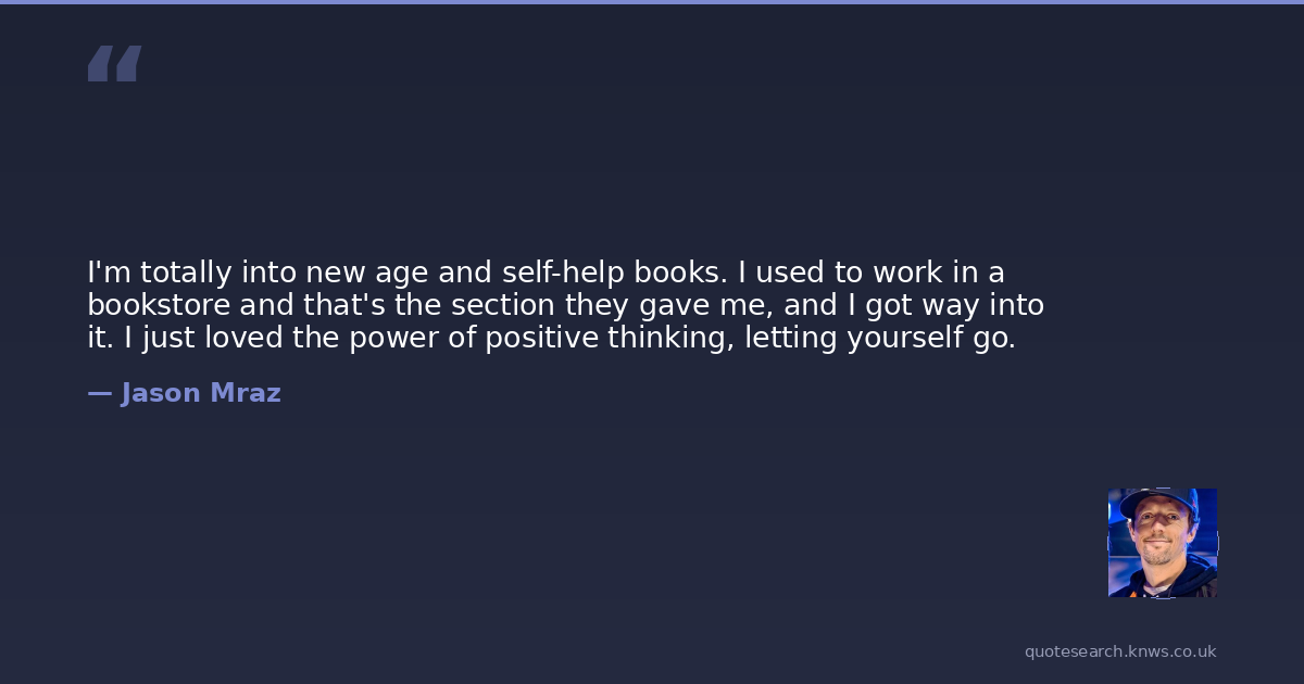 I'm totally into new age and self-help books. I used to work in a bookstore and that's the section they gave me, and I got way into it. I just loved the power of positive thinking, letting yourself go.