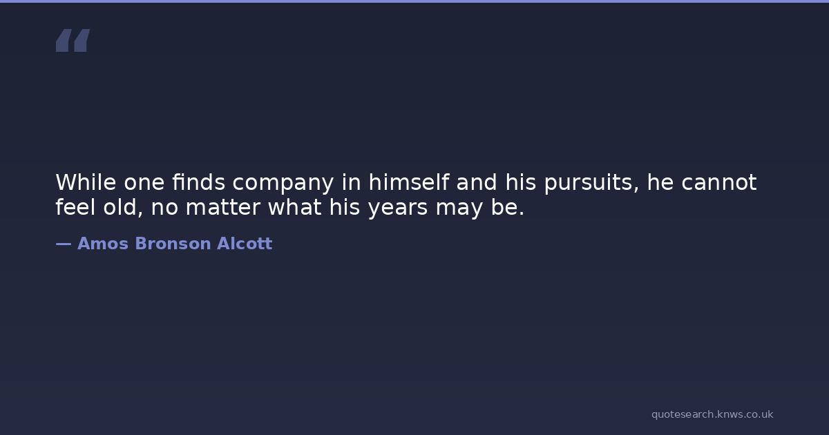 While one finds company in himself and his pursuits, he cannot feel old, no matter what his years may be.