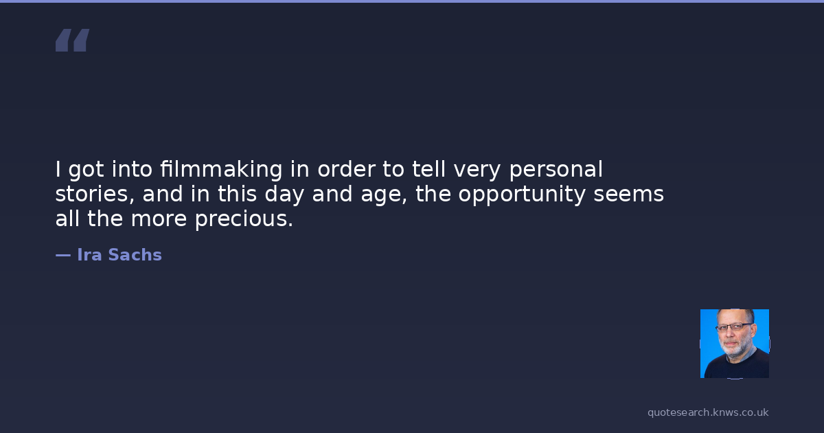 I got into filmmaking in order to tell very personal stories, and in this day and age, the opportunity seems all the more precious.