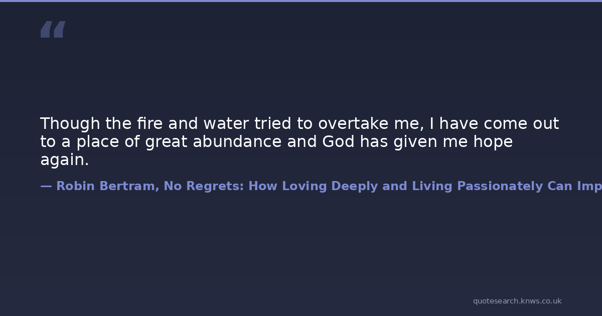 Though the fire and water tried to overtake me, I have come out to a place of great abundance and God has given me hope again.