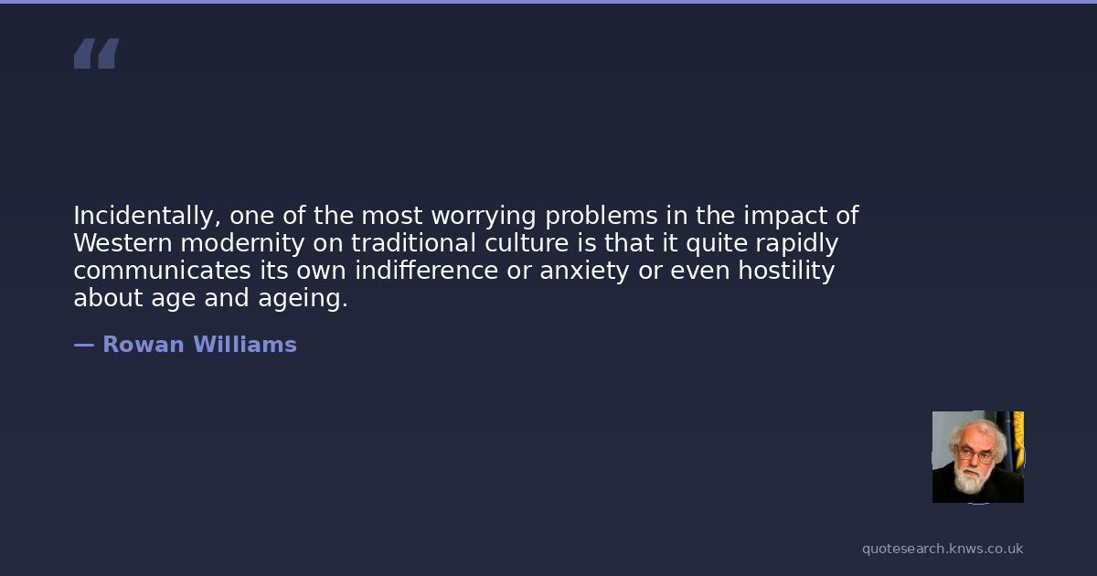 Incidentally, one of the most worrying problems in the impact of Western modernity on traditional culture is that it quite rapidly communicates its own indifference or anxiety or even hostility about age and ageing.
