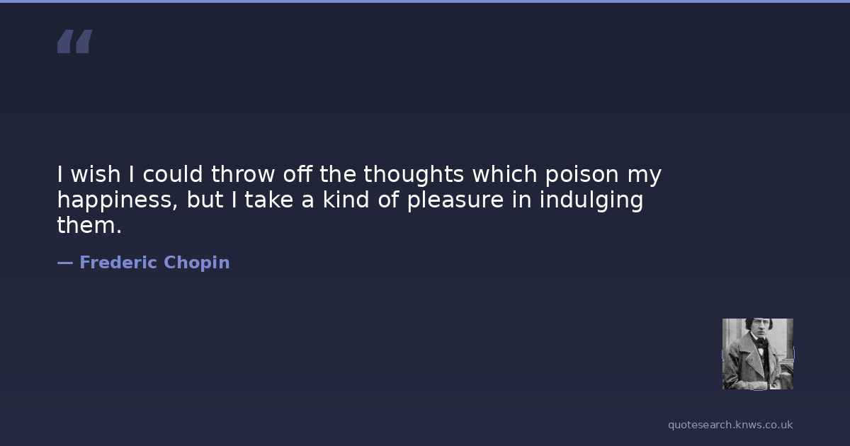 I wish I could throw off the thoughts which poison my happiness, but I take a kind of pleasure in indulging them.