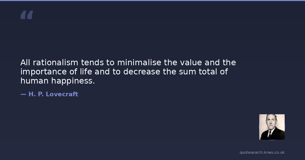 All rationalism tends to minimalise the value and the importance of life and to decrease the sum total of human happiness.