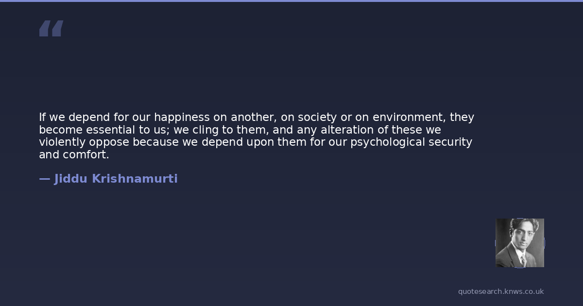 If we depend for our happiness on another, on society or on environment, they become essential to us; we cling to them, and any alteration of these we violently oppose because we depend upon them for our psychological security and comfort.