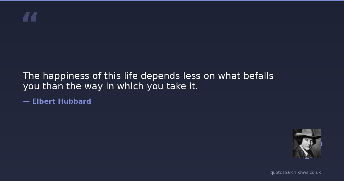 The happiness of this life depends less on what befalls you than the way in which you take it.