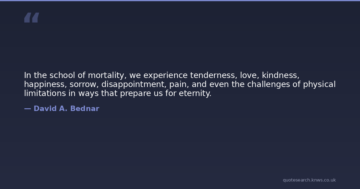 In the school of mortality, we experience tenderness, love, kindness, happiness, sorrow, disappointment, pain, and even the challenges of physical limitations in ways that prepare us for eternity.