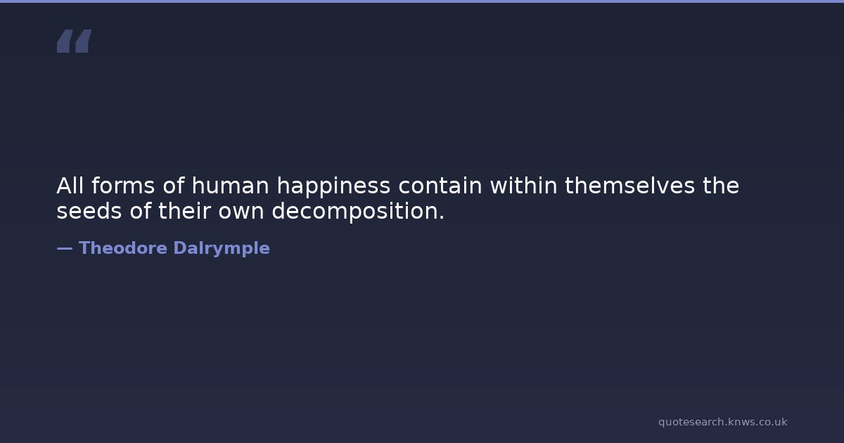 All forms of human happiness contain within themselves the seeds of their own decomposition.