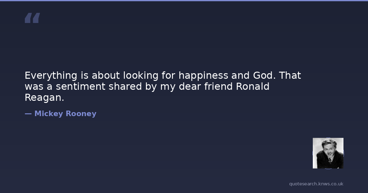 Everything is about looking for happiness and God. That was a sentiment shared by my dear friend Ronald Reagan.