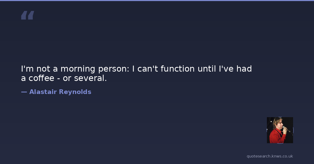 Alastair Reynolds was a contemporary Welsh science fiction author. Alastair Preston Reynolds is a Welsh science fiction author. He specialises in hard science fiction and space opera. Read more on Wikipedia →