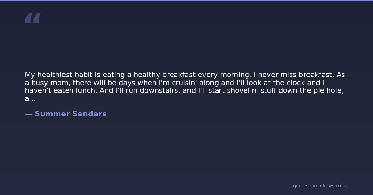 My healthiest habit is eating a healthy breakfast every morning. I never miss breakfast. As a busy mom, there will be days when I'm cruisin' along and I'll look at the clock and I haven't eaten lunch. And I'll run downstairs, and I'll start shovelin' stuff down the pie hole, and I'll think, 'That was no lunch at all.'