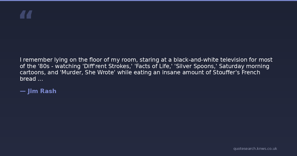 I remember lying on the floor of my room, staring at a black-and-white television for most of the '80s - watching 'Diff'rent Strokes,' 'Facts of Life,' 'Silver Spoons,' Saturday morning cartoons, and 'Murder, She Wrote' while eating an insane amount of Stouffer's French bread pizza. I was sucked into it all.