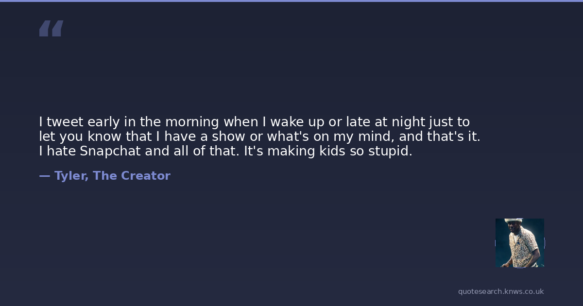 I tweet early in the morning when I wake up or late at night just to let you know that I have a show or what's on my mind, and that's it. I hate Snapchat and all of that. It's making kids so stupid.