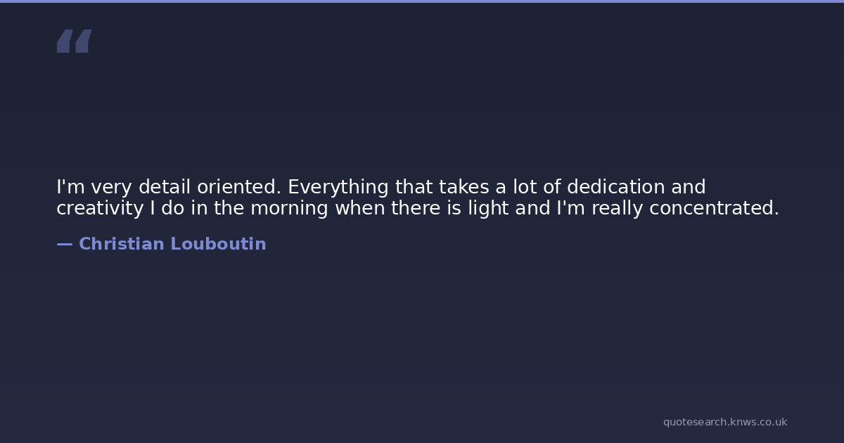 I'm very detail oriented. Everything that takes a lot of dedication and creativity I do in the morning when there is light and I'm really concentrated.