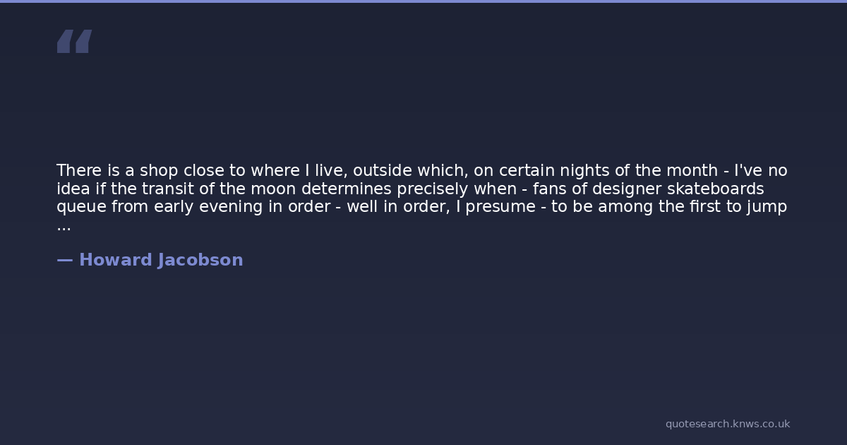 There is a shop close to where I live, outside which, on certain nights of the month - I've no idea if the transit of the moon determines precisely when - fans of designer skateboards queue from early evening in order - well in order, I presume - to be among the first to jump on a skateboard when the shop opens in the morning.