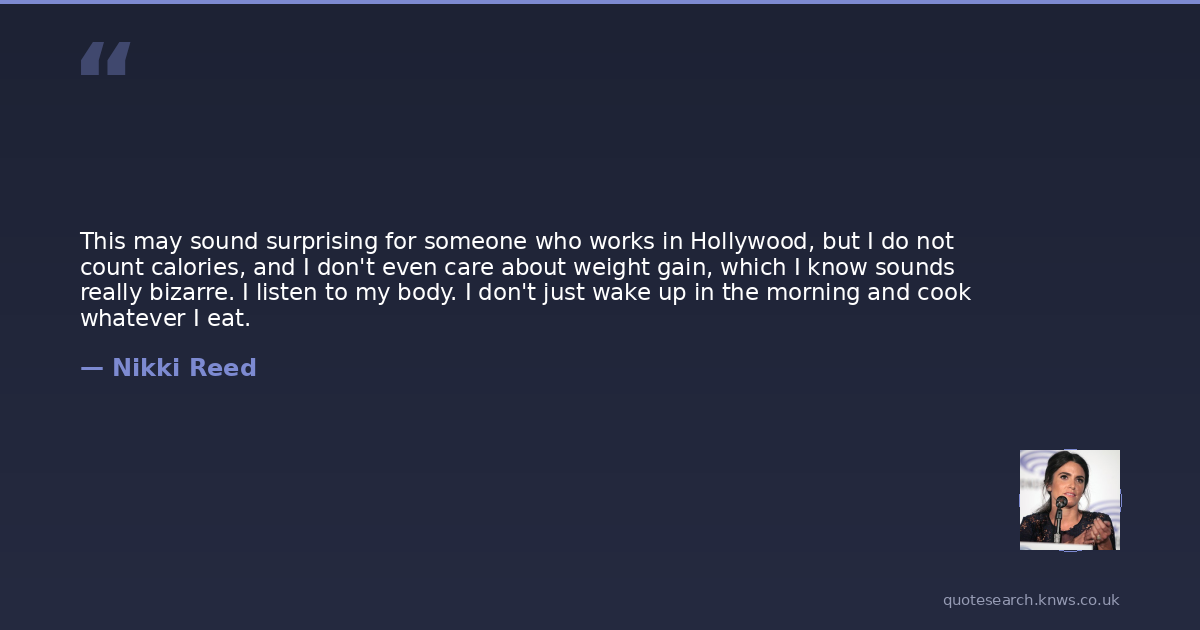 This may sound surprising for someone who works in Hollywood, but I do not count calories, and I don't even care about weight gain, which I know sounds really bizarre. I listen to my body. I don't just wake up in the morning and cook whatever I eat.