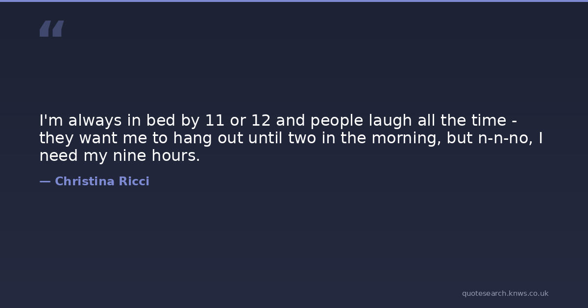 I'm always in bed by 11 or 12 and people laugh all the time - they want me to hang out until two in the morning, but n-n-no, I need my nine hours.
