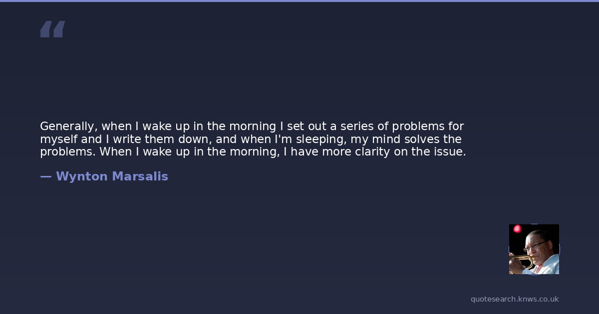 Generally, when I wake up in the morning I set out a series of problems for myself and I write them down, and when I'm sleeping, my mind solves the problems. When I wake up in the morning, I have more clarity on the issue.