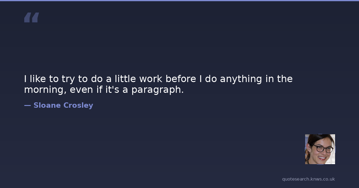 I like to try to do a little work before I do anything in the morning, even if it's a paragraph.