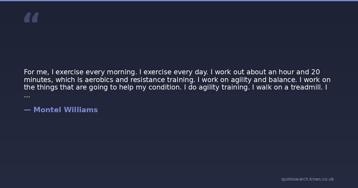 For me, I exercise every morning. I exercise every day. I work out about an hour and 20 minutes, which is aerobics and resistance training. I work on agility and balance. I work on the things that are going to help my condition. I do agility training. I walk on a treadmill. I use an elliptical. I use weights.