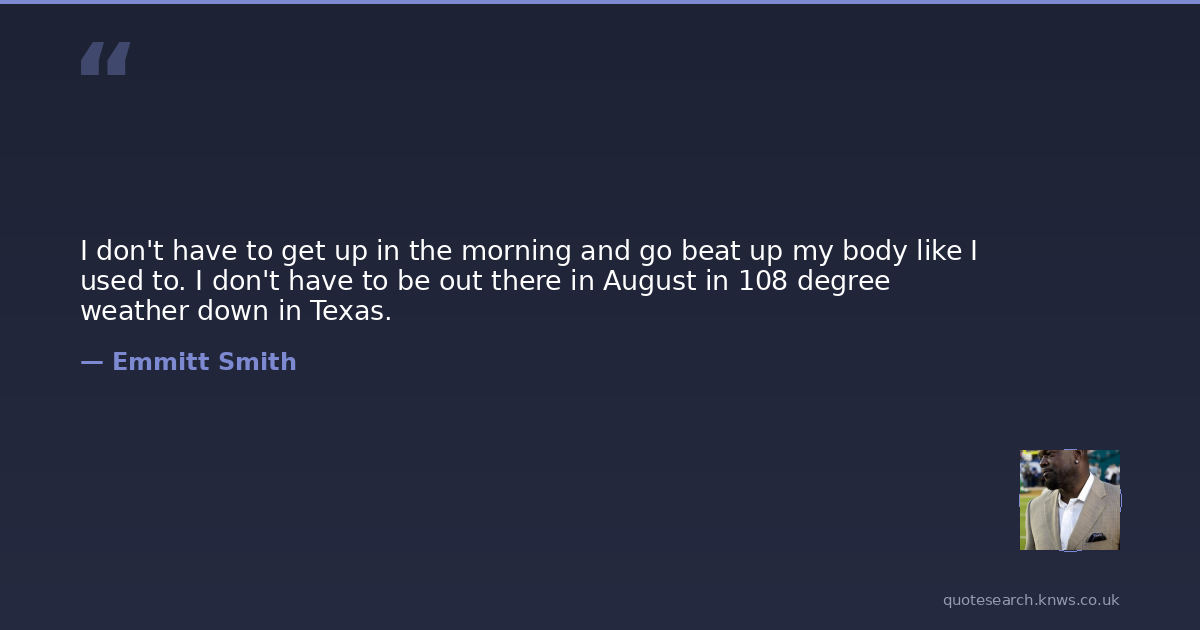 I don't have to get up in the morning and go beat up my body like I used to. I don't have to be out there in August in 108 degree weather down in Texas.