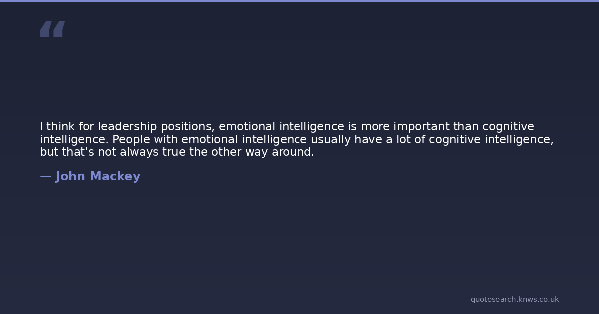 I think for leadership positions, emotional intelligence is more important than cognitive intelligence. People with emotional intelligence usually have a lot of cognitive intelligence, but that's not always true the other way around.