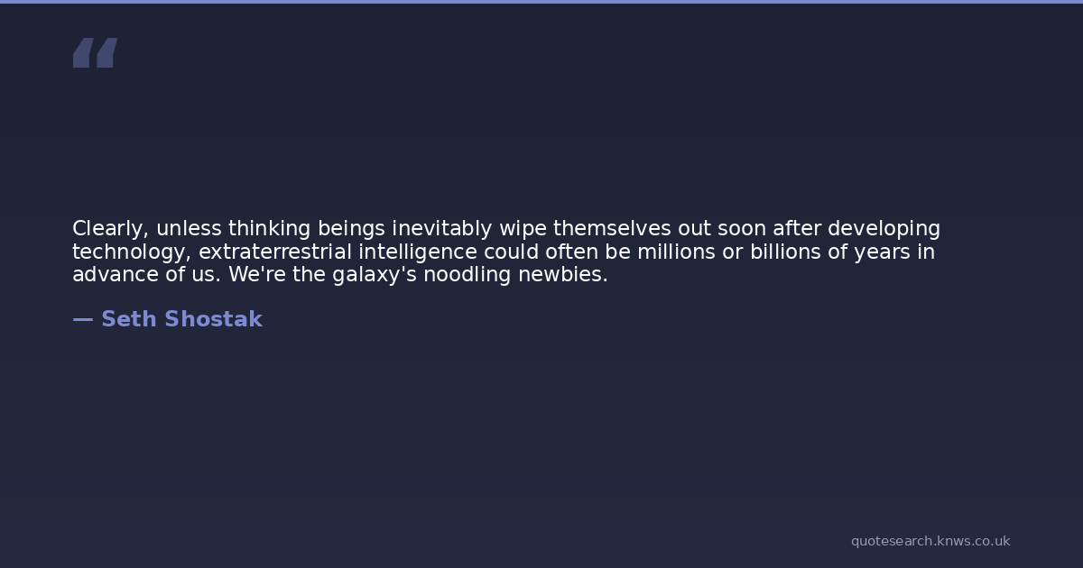 Clearly, unless thinking beings inevitably wipe themselves out soon after developing technology, extraterrestrial intelligence could often be millions or billions of years in advance of us. We're the galaxy's noodling newbies.