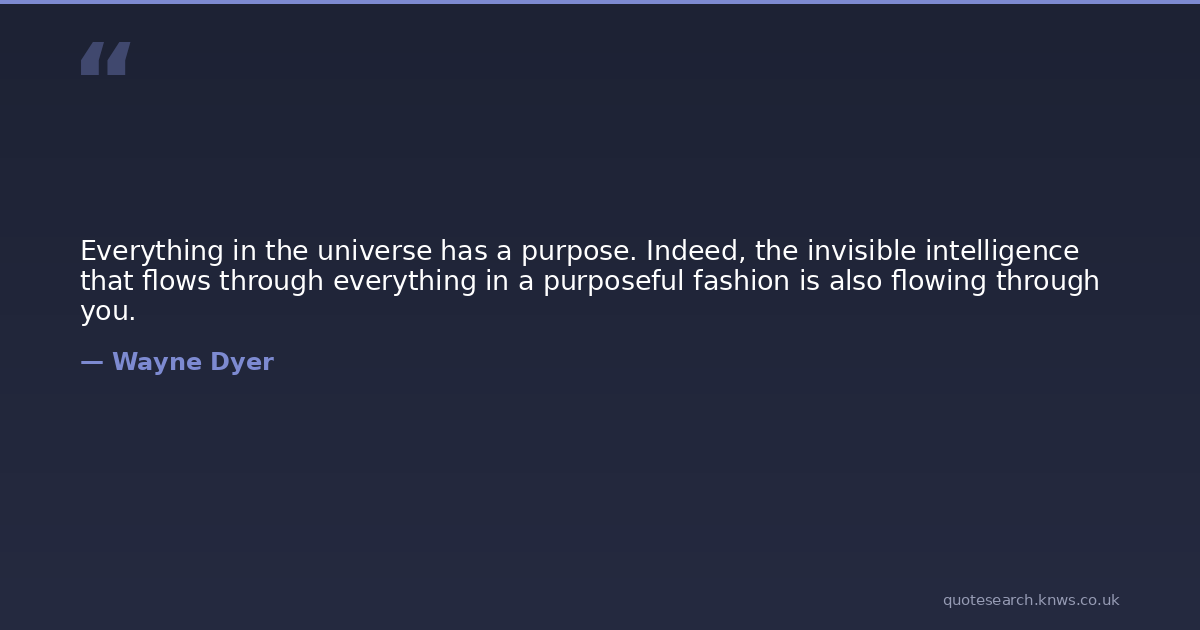 Everything in the universe has a purpose. Indeed, the invisible intelligence that flows through everything in a purposeful fashion is also flowing through you.