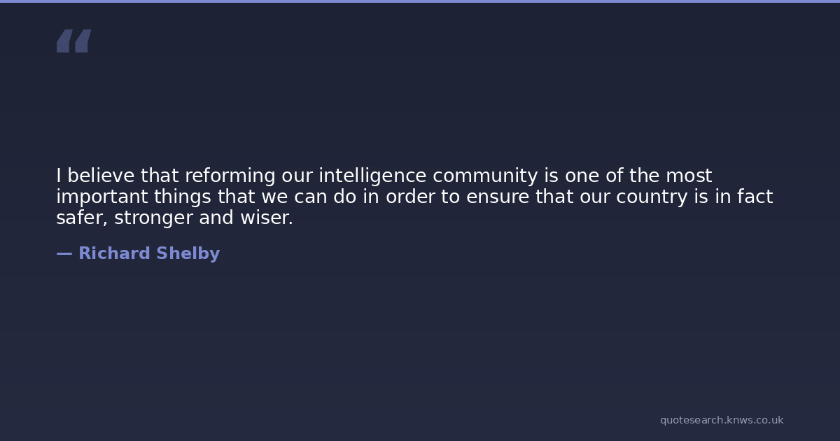 I believe that reforming our intelligence community is one of the most important things that we can do in order to ensure that our country is in fact safer, stronger and wiser.