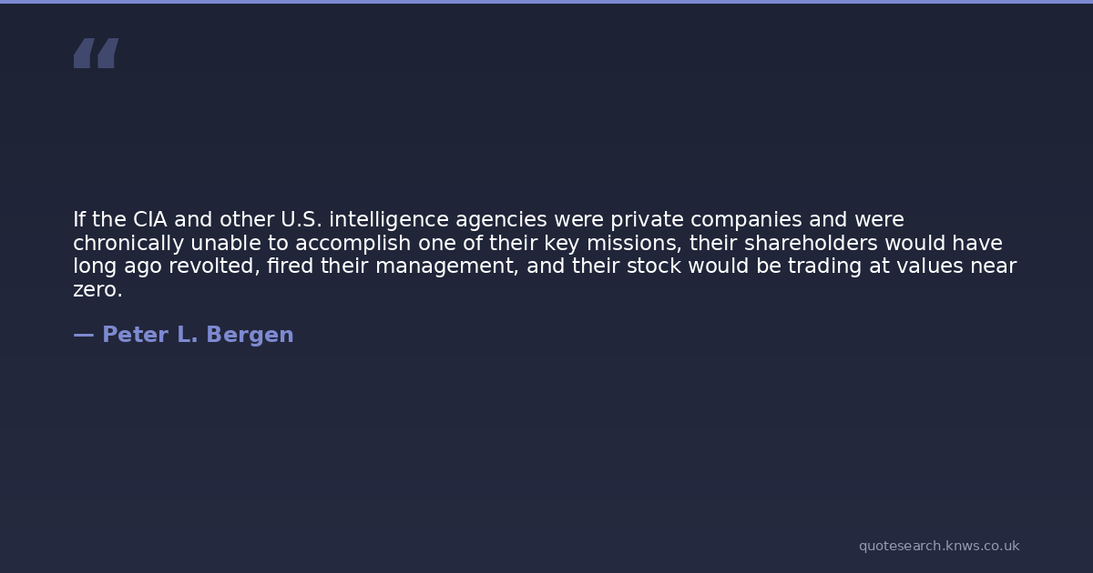 If the CIA and other U.S. intelligence agencies were private companies and were chronically unable to accomplish one of their key missions, their shareholders would have long ago revolted, fired their management, and their stock would be trading at values near zero.