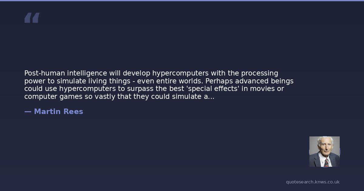 Post-human intelligence will develop hypercomputers with the processing power to simulate living things - even entire worlds. Perhaps advanced beings could use hypercomputers to surpass the best 'special effects' in movies or computer games so vastly that they could simulate a world, fully, as complex as the one we perceive ourselves to be in.