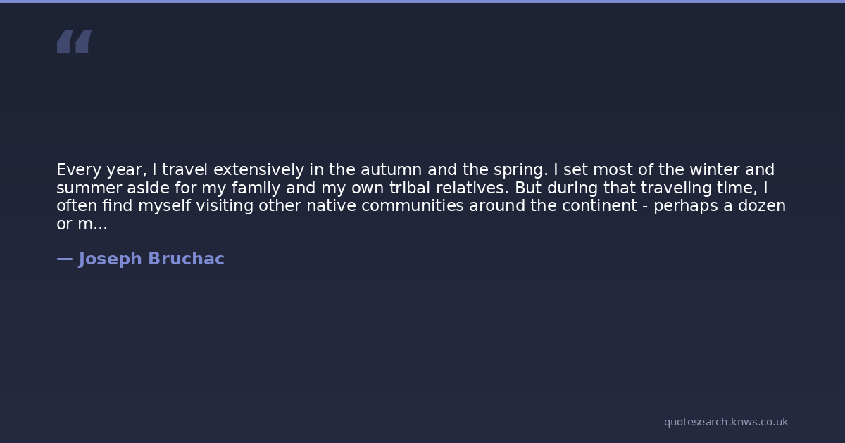 Every year, I travel extensively in the autumn and the spring. I set most of the winter and summer aside for my family and my own tribal relatives. But during that traveling time, I often find myself visiting other native communities around the continent - perhaps a dozen or more each year.
