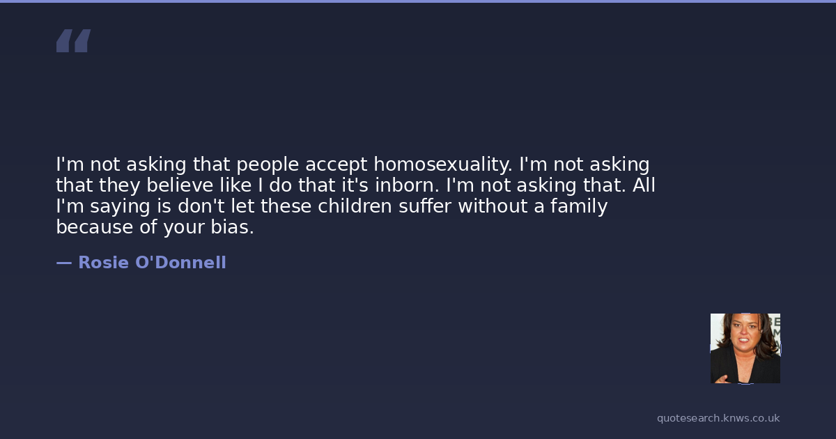 I'm not asking that people accept homosexuality. I'm not asking that they believe like I do that it's inborn. I'm not asking that. All I'm saying is don't let these children suffer without a family because of your bias.