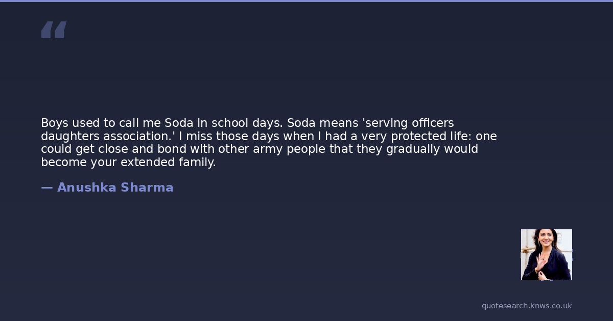 Boys used to call me Soda in school days. Soda means 'serving officers daughters association.' I miss those days when I had a very protected life: one could get close and bond with other army people that they gradually would become your extended family.