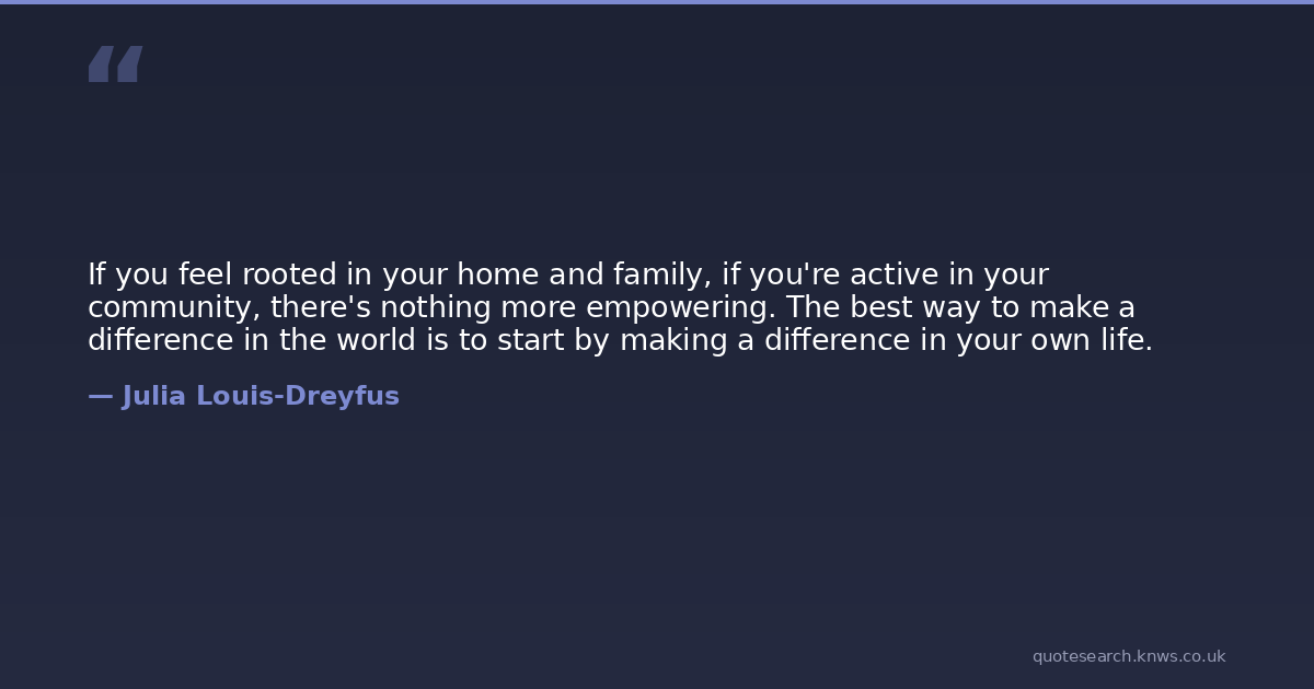 If you feel rooted in your home and family, if you're active in your community, there's nothing more empowering. The best way to make a difference in the world is to start by making a difference in your own life.