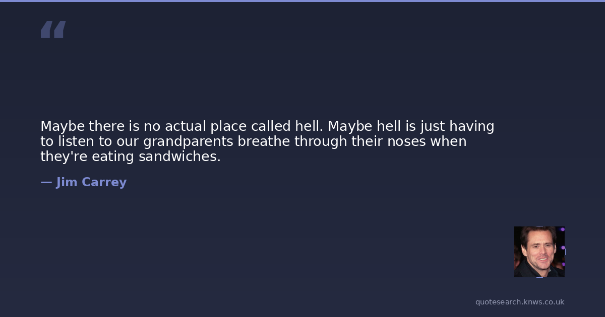 Maybe there is no actual place called hell. Maybe hell is just having to listen to our grandparents breathe through their noses when they're eating sandwiches.