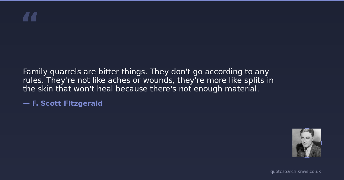 Family quarrels are bitter things. They don't go according to any rules. They're not like aches or wounds, they're more like splits in the skin that won't heal because there's not enough material.
