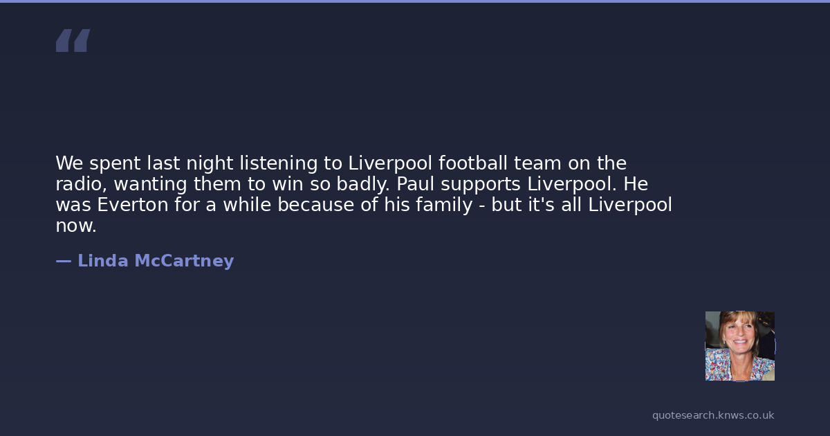 We spent last night listening to Liverpool football team on the radio, wanting them to win so badly. Paul supports Liverpool. He was Everton for a while because of his family - but it's all Liverpool now.