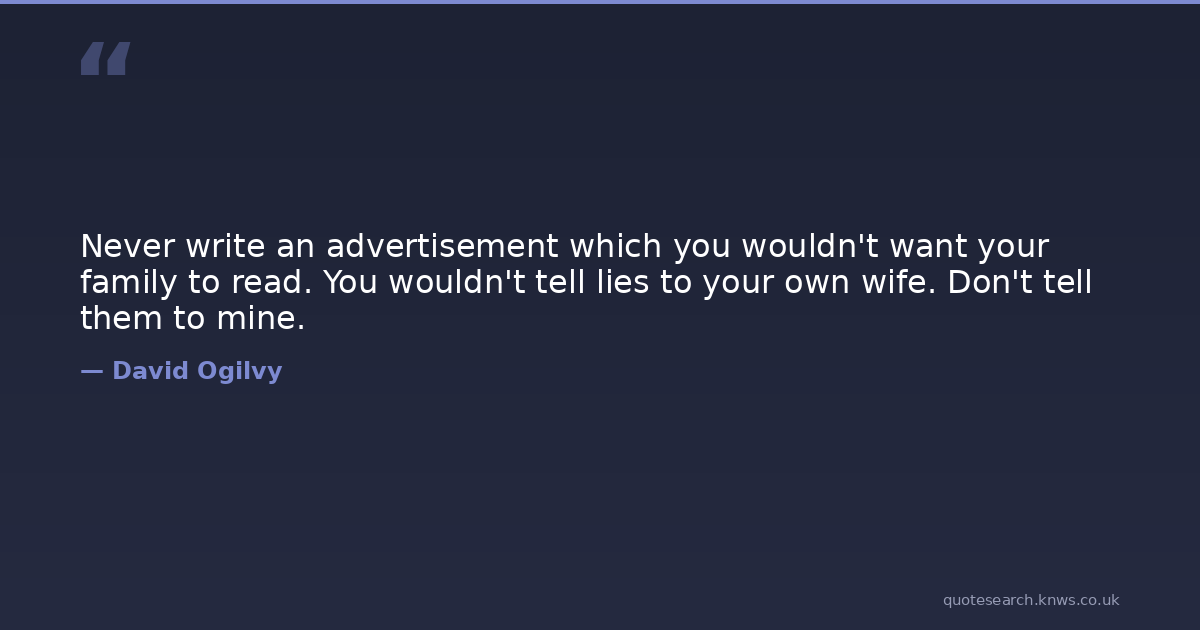 Never write an advertisement which you wouldn't want your family to read. You wouldn't tell lies to your own wife. Don't tell them to mine.