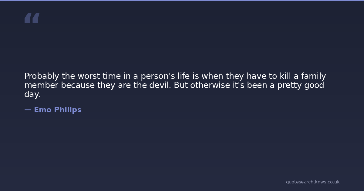 Probably the worst time in a person's life is when they have to kill a family member because they are the devil. But otherwise it's been a pretty good day.