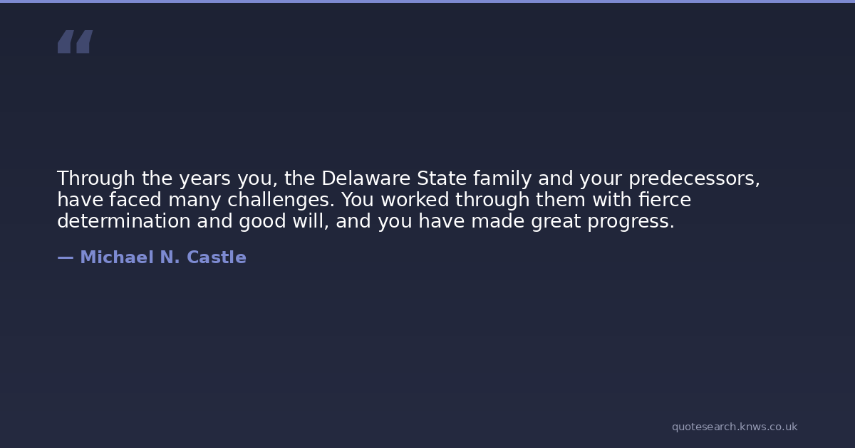 Through the years you, the Delaware State family and your predecessors, have faced many challenges. You worked through them with fierce determination and good will, and you have made great progress.