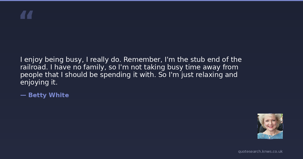 I enjoy being busy, I really do. Remember, I'm the stub end of the railroad. I have no family, so I'm not taking busy time away from people that I should be spending it with. So I'm just relaxing and enjoying it.