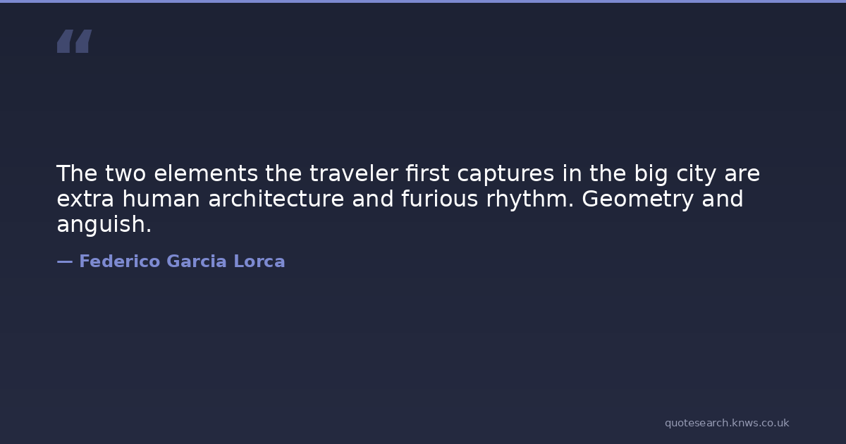 The two elements the traveler first captures in the big city are extra human architecture and furious rhythm. Geometry and anguish.