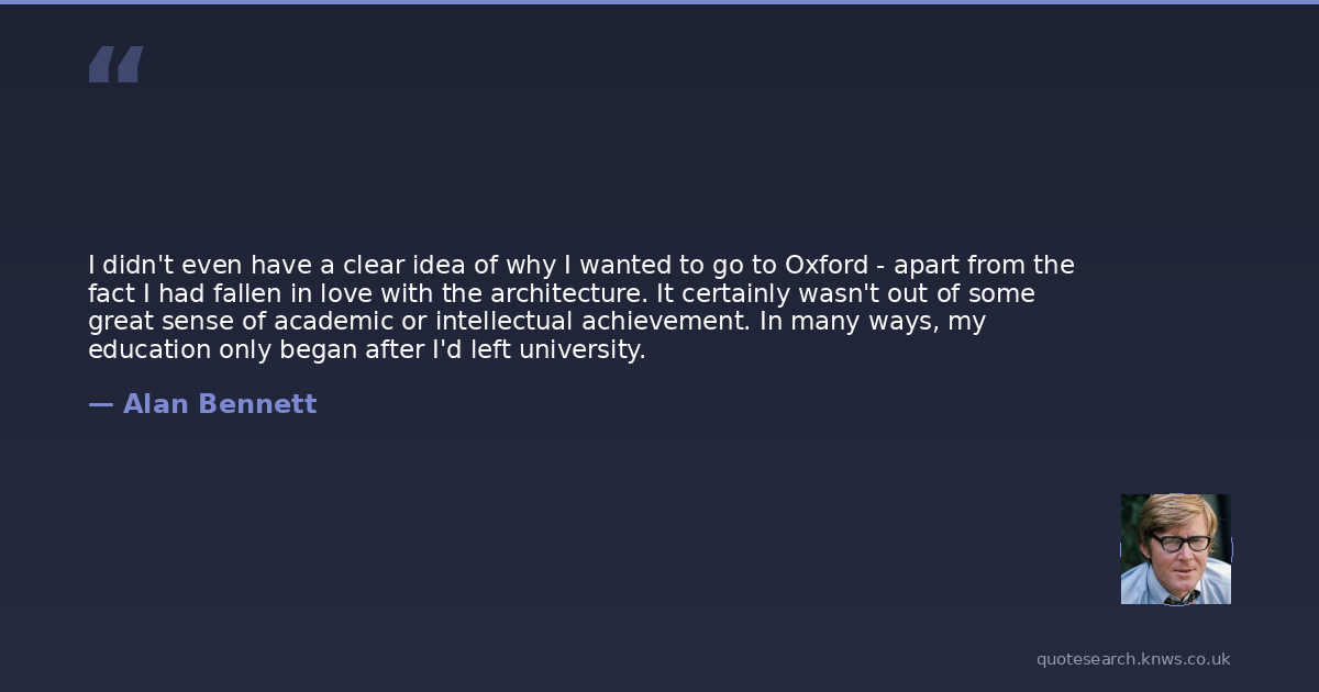 I didn't even have a clear idea of why I wanted to go to Oxford - apart from the fact I had fallen in love with the architecture. It certainly wasn't out of some great sense of academic or intellectual achievement. In many ways, my education only began after I'd left university.