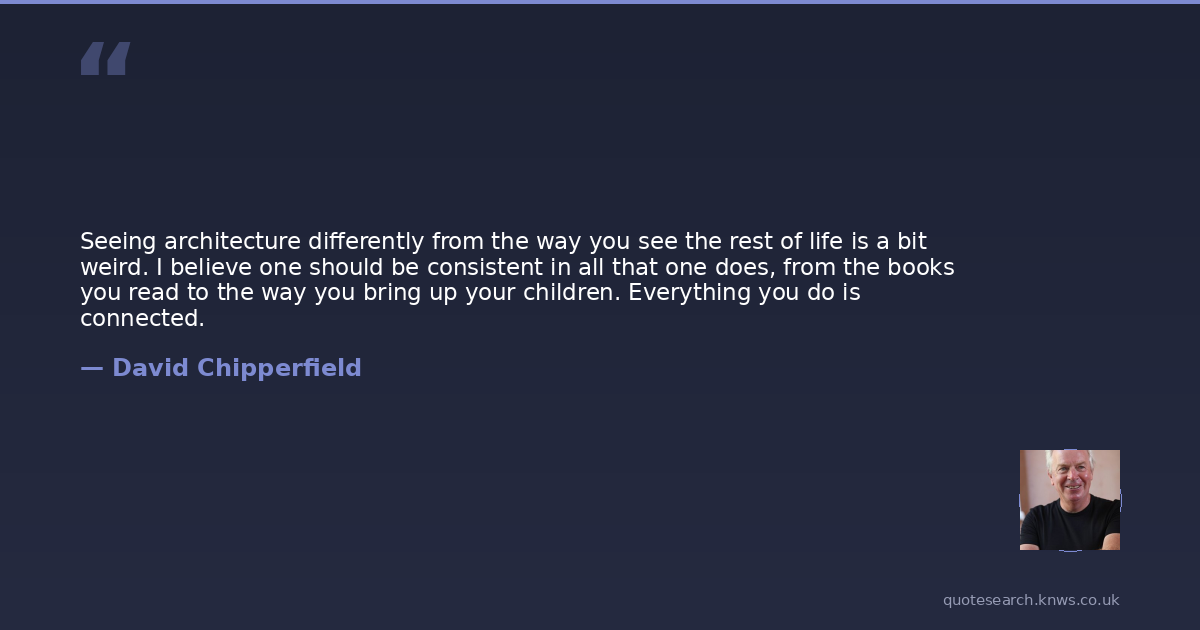 Seeing architecture differently from the way you see the rest of life is a bit weird. I believe one should be consistent in all that one does, from the books you read to the way you bring up your children. Everything you do is connected.
